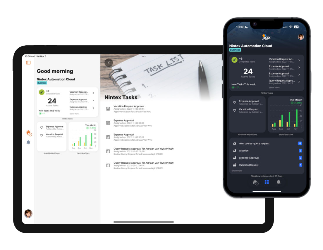 Jigx lets you build native mobile apps for iOS, Android, and tablets that integrate with your existing systems, including your workflow and process automation tools.